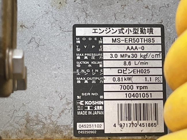 SPRAYER MACHINE รหัสสินค้า : 50903015 ยี่ห้อ : KOSHIN รุ่น : MS-ER50TH85