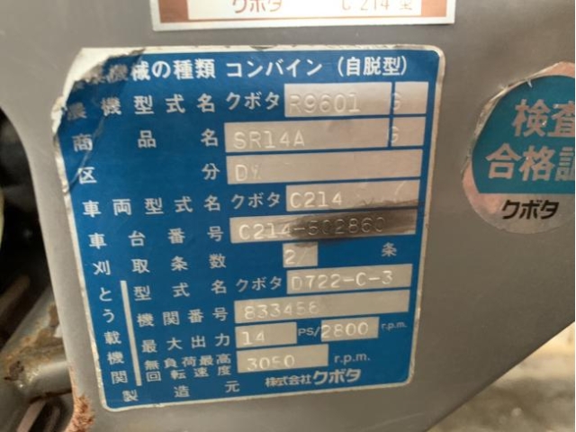 รถเกี่ยวนวดข้าวนั่งขับ KUBOTA SR14A #502860